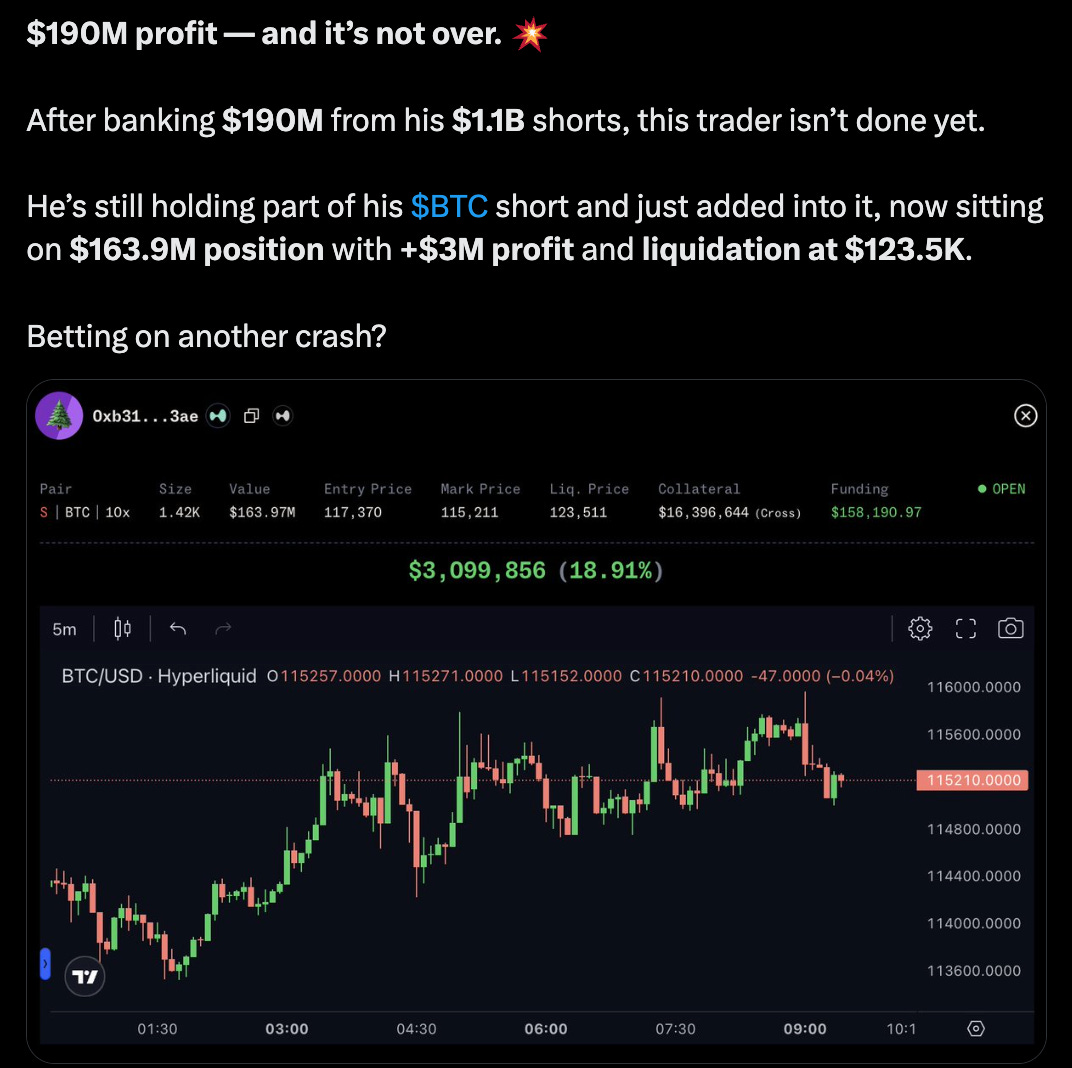 The $190M Profit Mystery Wallet We closely monitored a wallet that profited over $190M from $1.1B BTC shorts during a market plummet—opening a massive $437M position just before the drop. With perfect timing and conviction, it raises red flags for potential insider knowledge. Did he know something in advance? Check it out 🔗 here