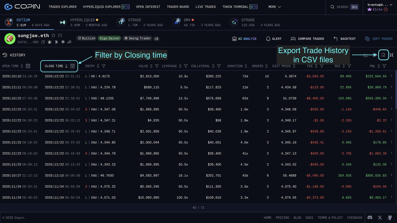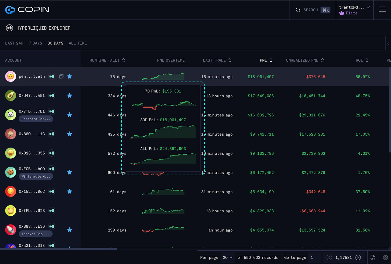 Copin Analyzer is the leading on-chain data & signal platform for perpetual trading. Explore, analyze & follow 2.5M+ on-chain trader profiles from 64+ perpetual DEXs & counting.